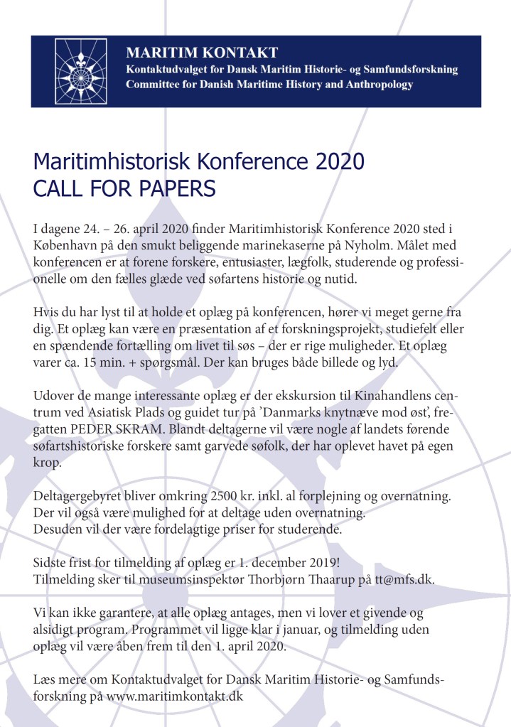 September 13, 2019 by geuzelambix Maritimhistorisk konference 2020 – call for papers Image Uncategorized Leave a comment