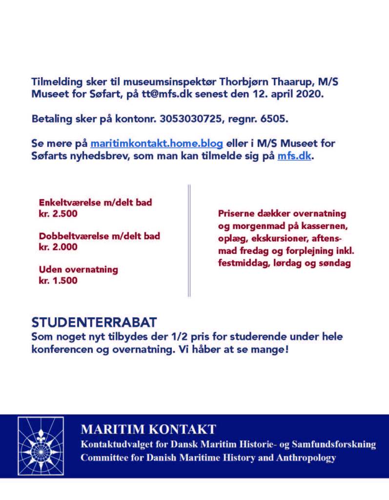 Ja – så skete det desværre. Vi er i konferenceudvalget enige om, at vi aflyser Maritimhistorisk Konference 2020. Det er primært pga. coronavirus. Vi aner ikke, hvordan verden ser ud om godt en måned, og vi oplever, at næsten ingen melder sig til, fordi folk med god grund skærer ned på sociale arrangementer. Vi vil gerne takke jer for at have tilmeldt jer med eller uden oplæg.