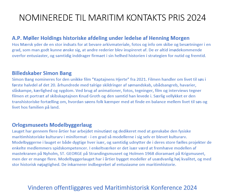 Vi glæder os til at uddele Maritim Kontakts pris til konferencen i Ribe 3. – 5. maj.